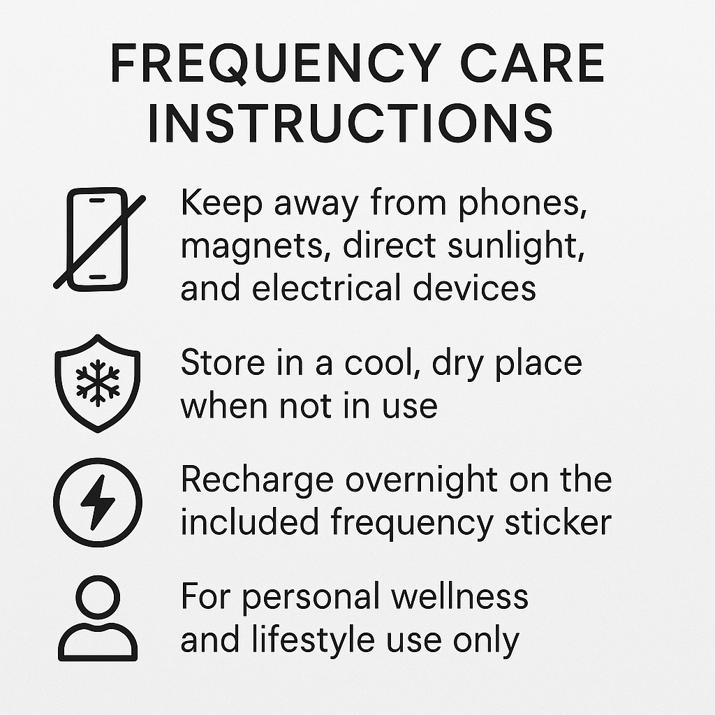 This product is not intended to diagnose, treat, cure, or prevent any disease. Frequency-infused items are for energetic support only and should not replace professional medical advice or treatment. Always consult your healthcare provider if you have any concerns.