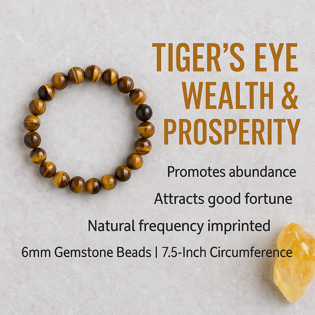 Tigers Eye Wealth & Abundance Frequency Imprinted Beaded Bracelet